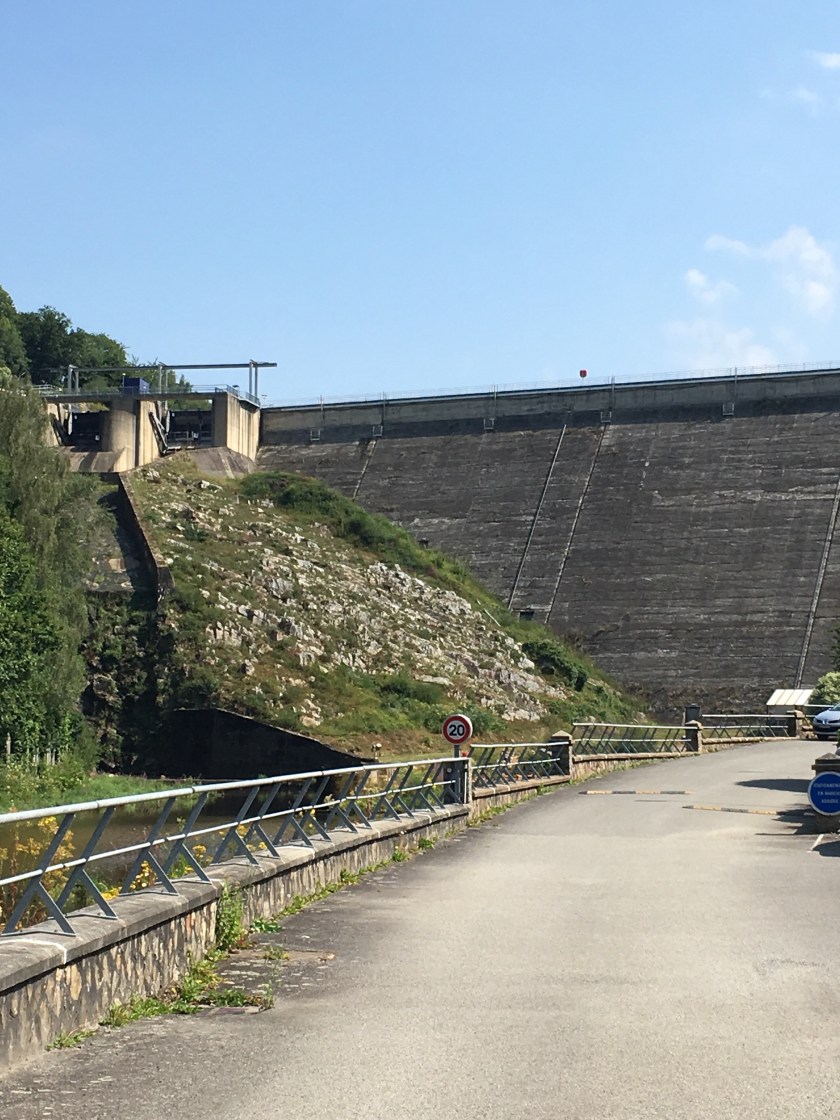 The upshot for today’s Velodyssee cyclist (going south to north) is that you have to make a detour around the dam and rise up over 50m from base river level to reservoir level up a very steep road ( definitely a get off and push manoeuvre). The route then follows an old railway track for about 30 miles before rejoining the upper section of the canal system. Bit of an inconvenience!!