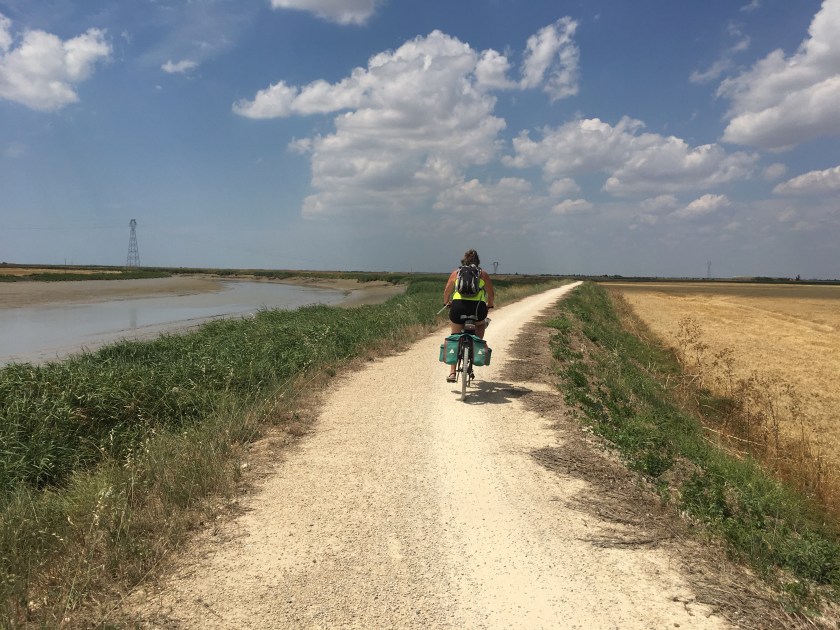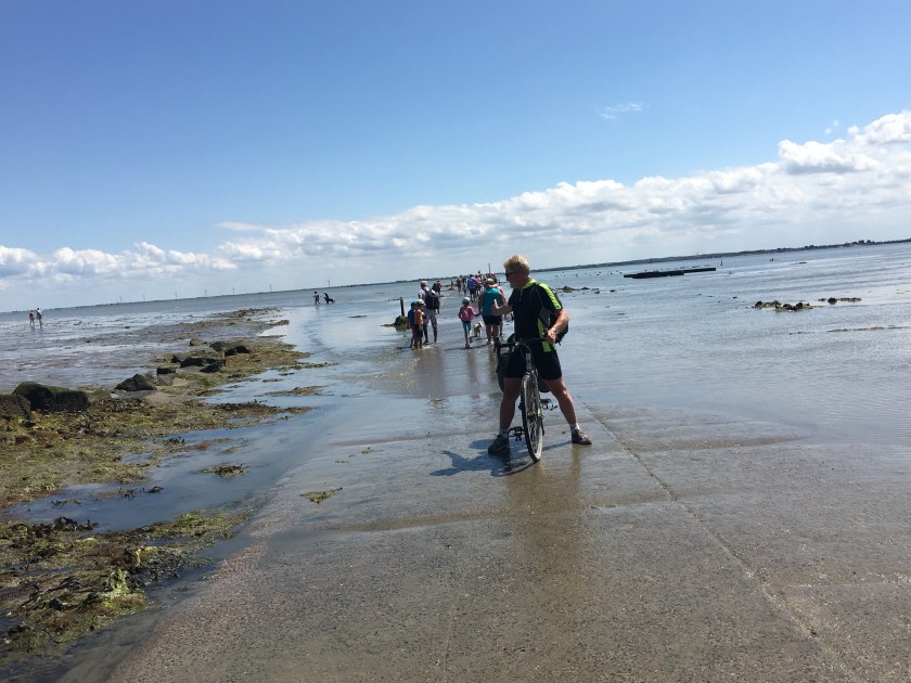 Today’s route took us on a final passing through the land of oysters, mussels, salt production and other fishy industries. Did you know that an oyster becomes an adult at the age of three at which time it develops a gonad which can be either eggs or sperm. When the sea temperature is right (between 20 and 30 degC) and the salinity is above 10ppt, it takes just one oyster to release the contents of its gonad to trigger a mass release by all its neighbours this creating a sort of local sexual stew. Fertilisation happens and fertilised eggs just drift aimlessly around for a while until they develop into a larva. Incredibly these larvae can’t swim horizontally so they shmooze about for a few weeks in the ebb and flow of the tide until they grow a foot and then they hop about looking for some nice smooth rock to perch on. Once they are satisfied with their new home they metamorphose completely into what is called spat. They grow a lovely new home for themselves in the form of a calcium shell and then just gorge themselves for 3 years on passers by at which point they become an adult – and round we go again. Also at 3 years old you become the prey and a big beefy French fisherman comes along and prizes you off your lovely rock and puts you in a bucket then opens you up, puts you on a plate and a mozzy-bitten English cyclist squirts lemon all over you and eats you whole. What a life that was!!!!