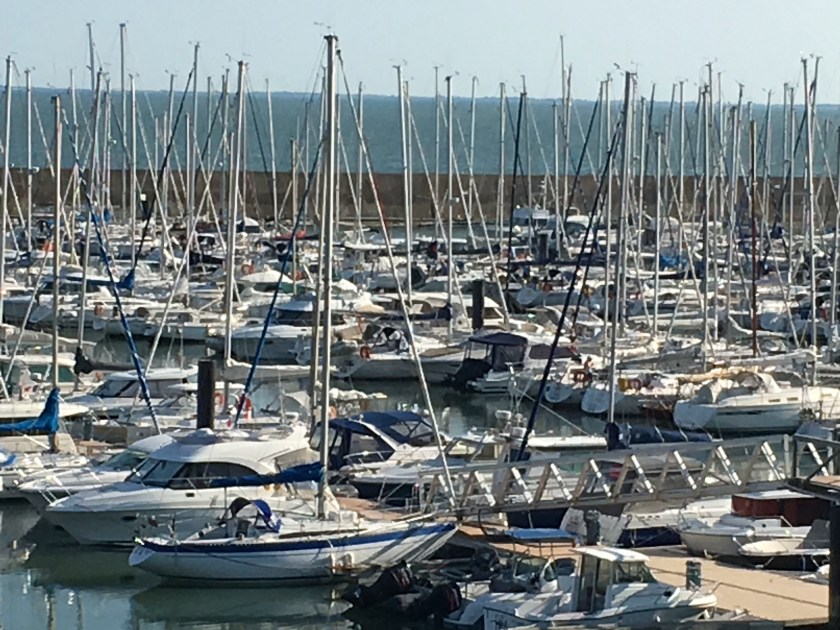 The day started rather earlier than hoped at about 5am. Despite the hotel’s full name being the Relais du Silence Domaine Le Martinet the silence part failed to live up to expectation! We were stupidly sleeping with the windows open to try and keep the room cool at night, however all that did was allow in just one or two pesky mosquitoes which you only know are there when they buzz like mad in your ear. I woke up to the sound of Mrs Nelson madly slapping her own face in an attempt to swat the blighter before it had plunged its piercing proboscis into her neck. Doomed to failure! We now both have some nice itchy blotches developing on arms and faces. Having been so rudely awakened getting back to sleep became impossible as the blinking dawn chorus had started up like a layered symphonic composition. Two wood pidgeons we’re giving low level alternating coos to each other whilst in the background some blackbirds were tunefully singing as a team and above all of that the wheeling screeching seagulls reminded you of the proximity to the sea. Just about dozed off again at 7.00am and the electronic gate into the car park behind the hotel clicked opened and grated its way over the tarmac to let in the chattering hotel workers who were kindly going to make my breakfast which I hoped would be at least 2 hours away. Then came the infuriating universal beep beep beep of the reversing bin lorry which finally put paid to any chance of getting back to sleep so we just got up and rubbed cream into our nice new mozzy bites.